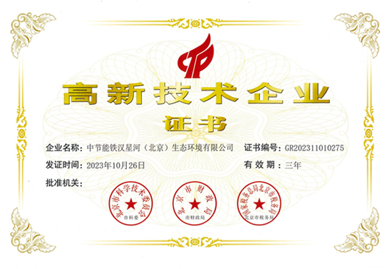 近日,中節(jié)能鐵漢所屬鐵漢星河收到北京市科學(xué)技術(shù)委員會(huì)、北京市財(cái)政局、國(guó)家稅務(wù)總局北京市稅務(wù)局聯(lián)合頒發(fā)的《高新技術(shù)企業(yè)證書(shū)》,這是鐵漢星河自2014年以來(lái),第四次獲得該證書(shū)。